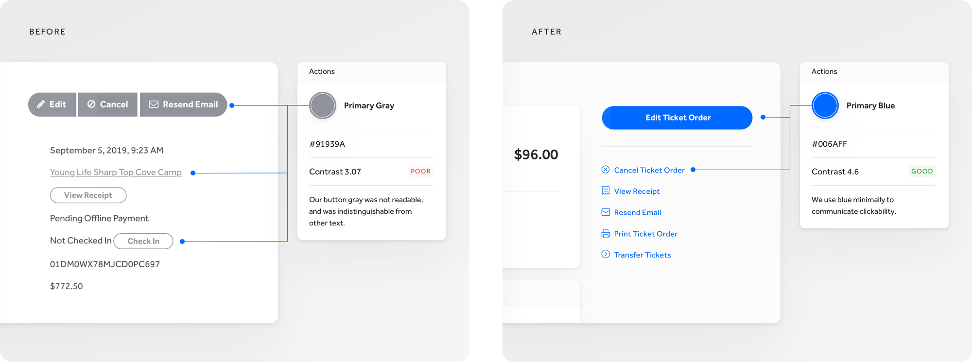 - Clickability: We no longer allowed color to be flourish or flair, but pure and simple - color communicates clickability.