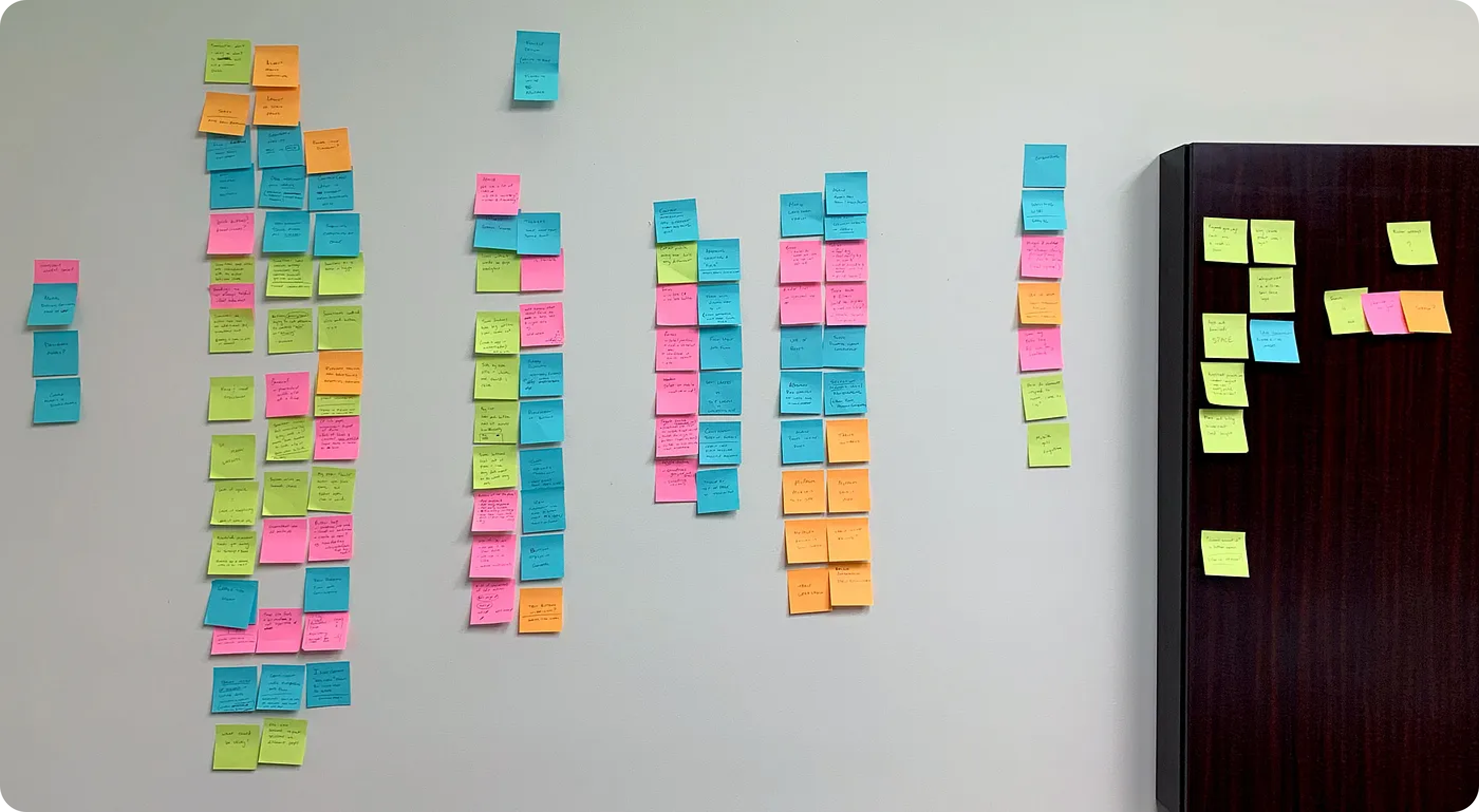 We didn’t openly discuss each screen, but instead walked around quietly taking in all the inconsistencies and user interface frustrations (retooling a small cue from Jake Knapp’s book Design Sprint). With sticky notes and pens in hand, the goal was to not overly prescribe solutions, but instead to call out symptoms and where we found them. We each had a different take on the screens. This silent critique became very natural after a while, and the next steps sort of revealed themselves.