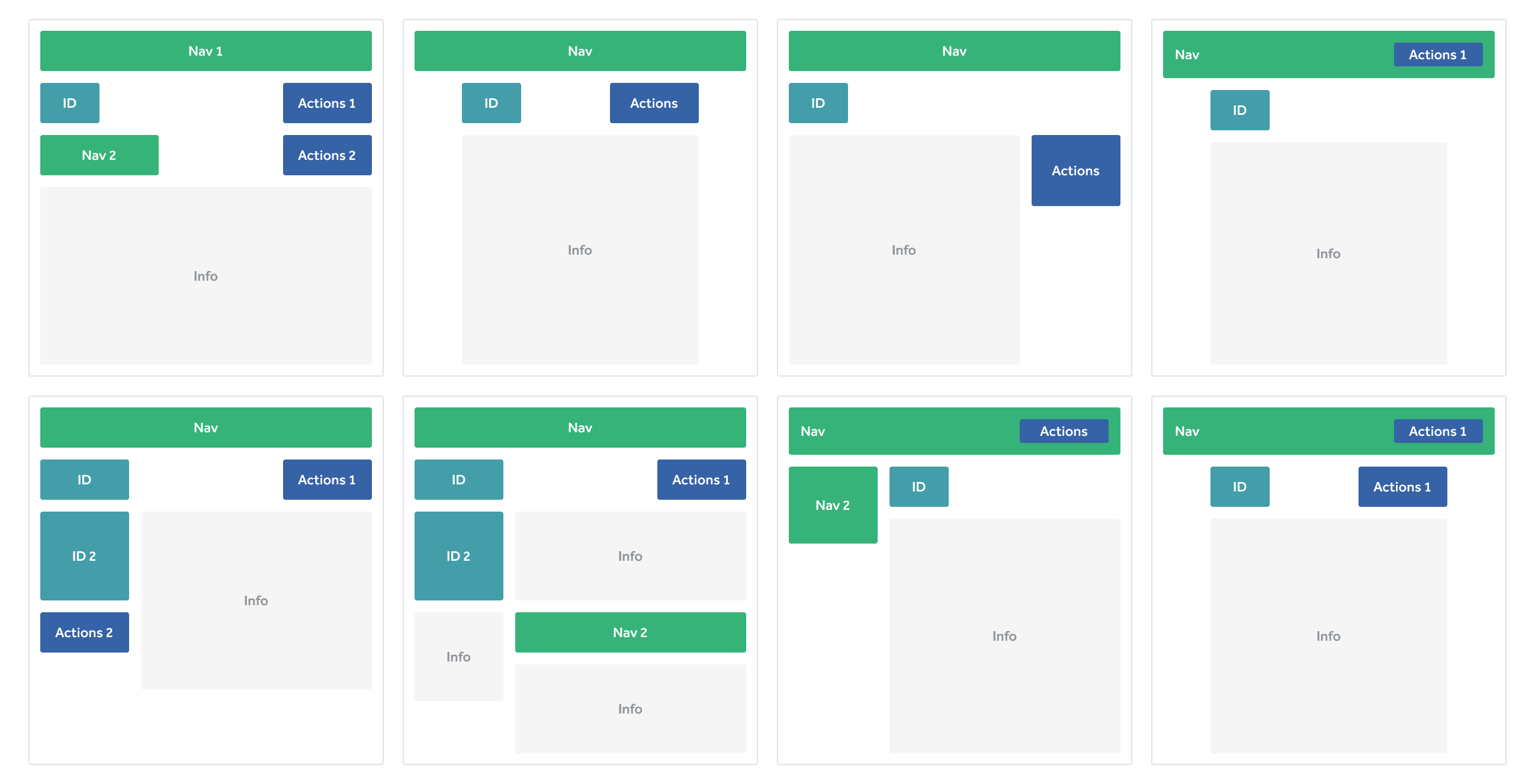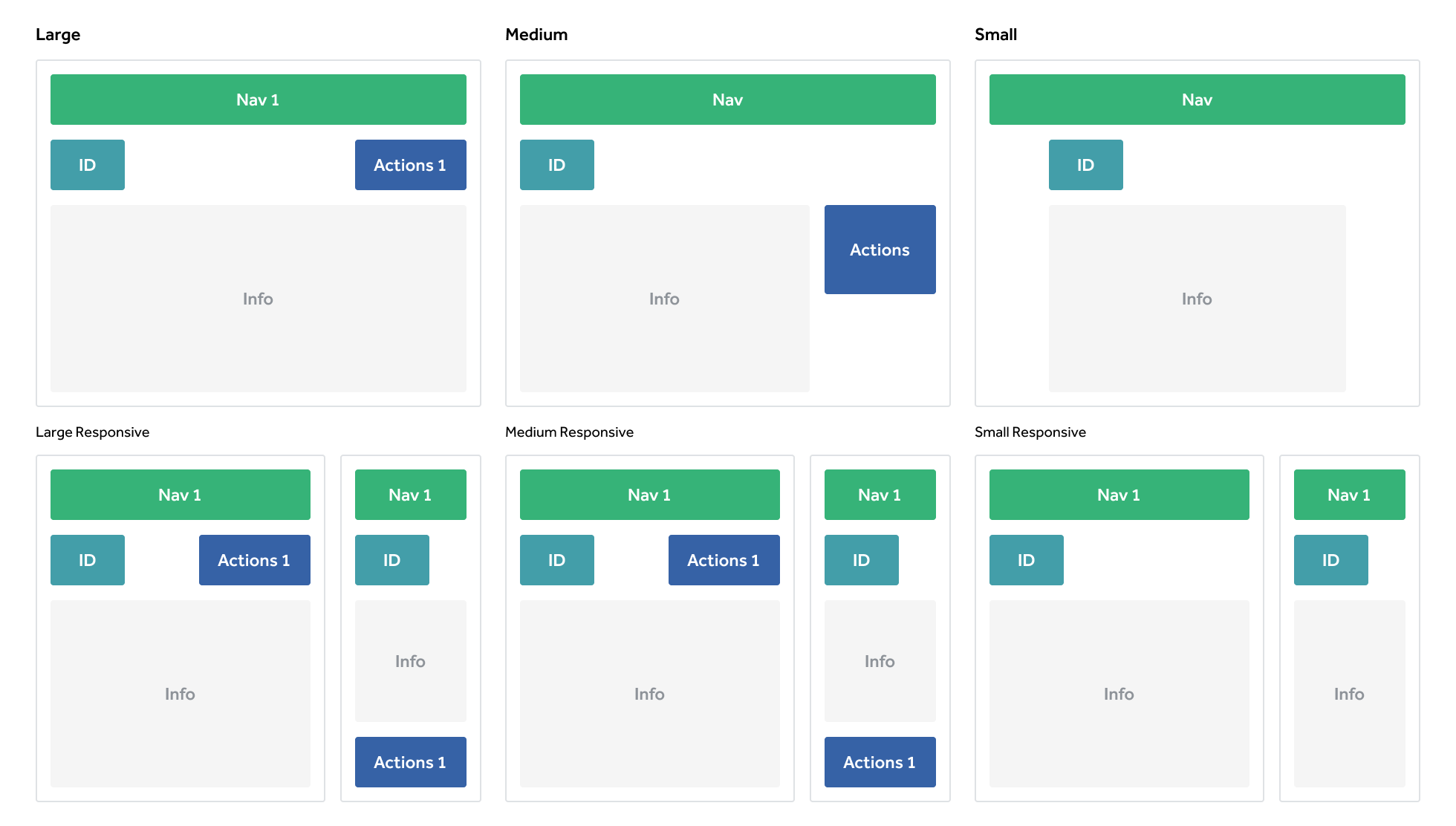 Our design system includes more styles to work with like emphasis, size, the option for icon, and a mobile-sized button to make room on smaller screens. We limited placement to top right (to create or initiate), or bottom left (to save or cancel). Other than that, actions can be integrated into our content flow. While this update seems elementary, it provided clear buffers for designers and product managers who kept wanting to fill empty space with actions.