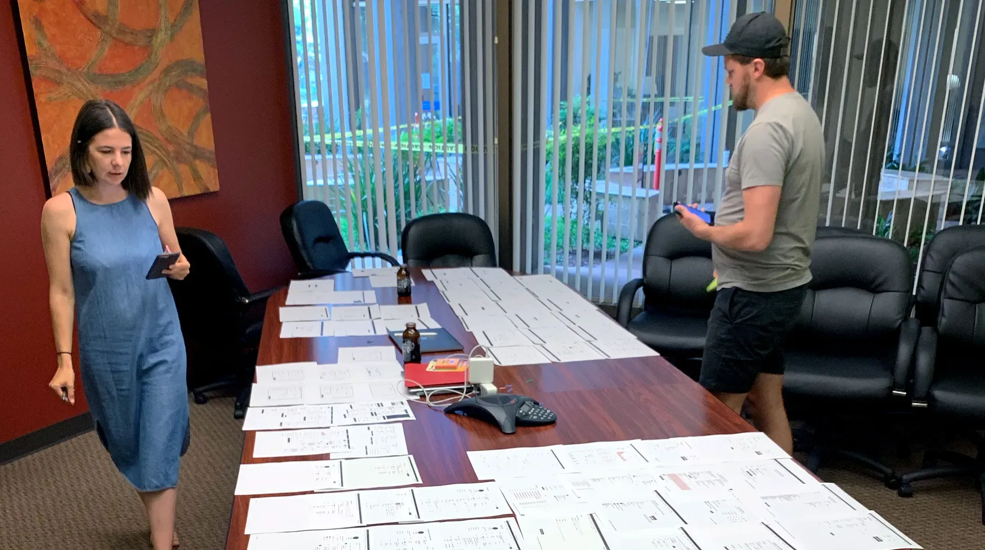 They shared with me Karri Saarinen’s Building a Design Language article. The highlight for us, where we were at in our process, was doing an audit, or a UI inventory. I printed out every screen in our entire product, maybe 200 pieces of paper. This included tables, dialog boxes, dropdowns, expanded sections, and forms, lots and lots of forms. A key pain point for us was not UI elements alone, but in context to the larger story. We needed to see everything and how it was being used. We took over a conference room and laid out every printed interface across a giant table and all over the floor.