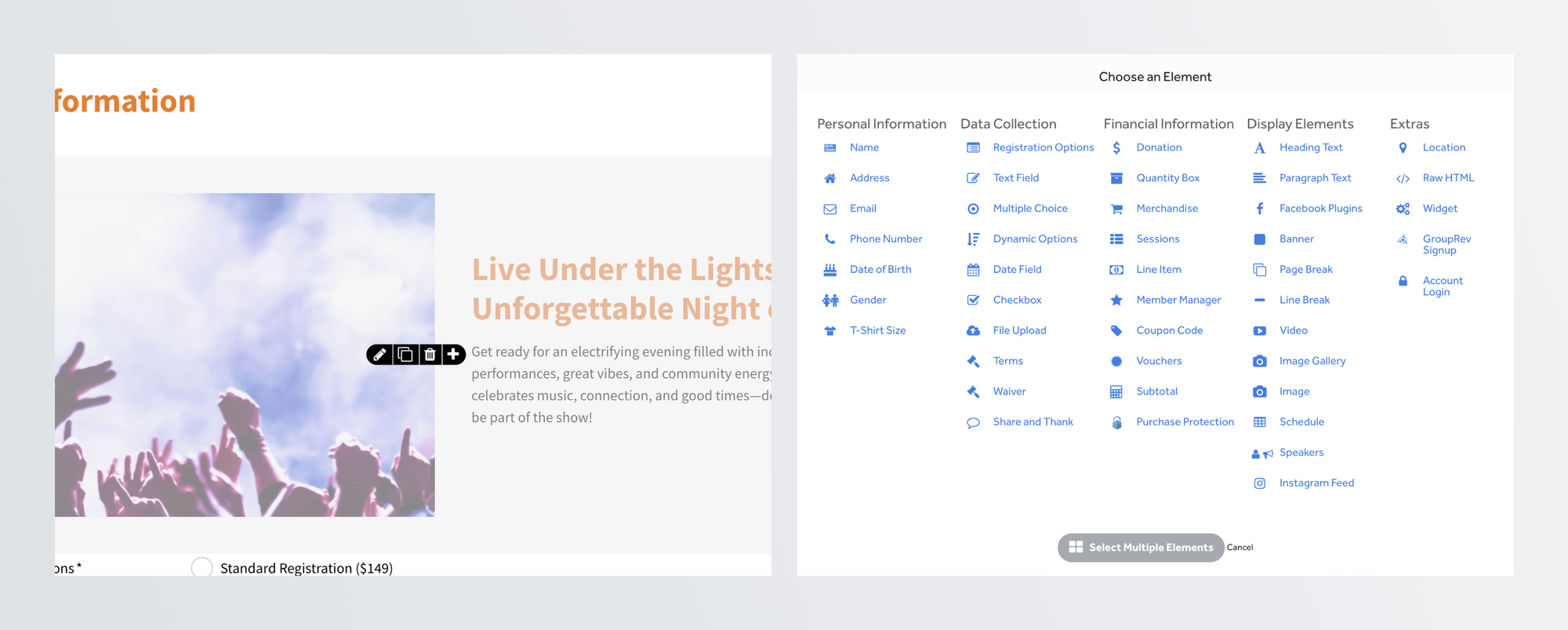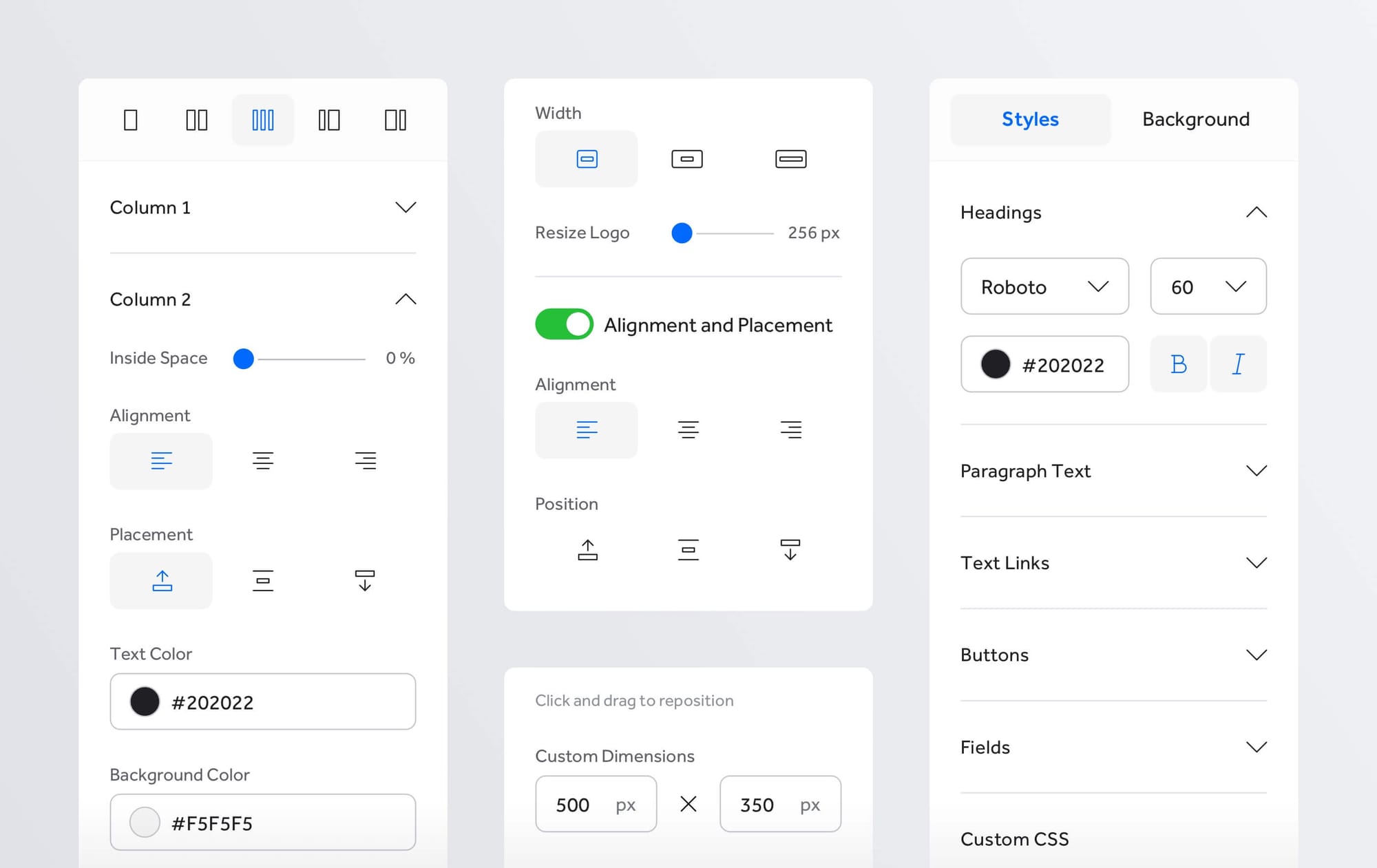 We wanted to introduce a new interactive approach. Our layout page elements would now be controlled by a small toolbar at the top that reveals a set of controls into a popover.